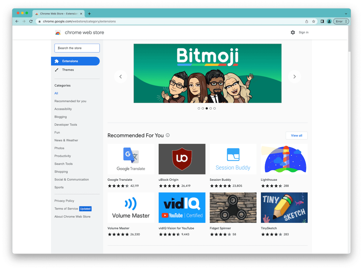 - 單擊側邊欄中的類別或使用側邊欄頂部的搜索框搜索擴展程序。
