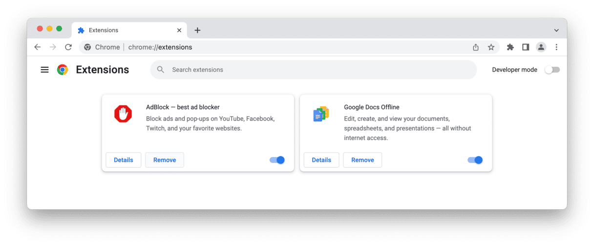 chrome://extensions進入地址欄並按回車鍵, - 要了解有關已安裝擴展的更多信息,請單擊“詳細信息”。