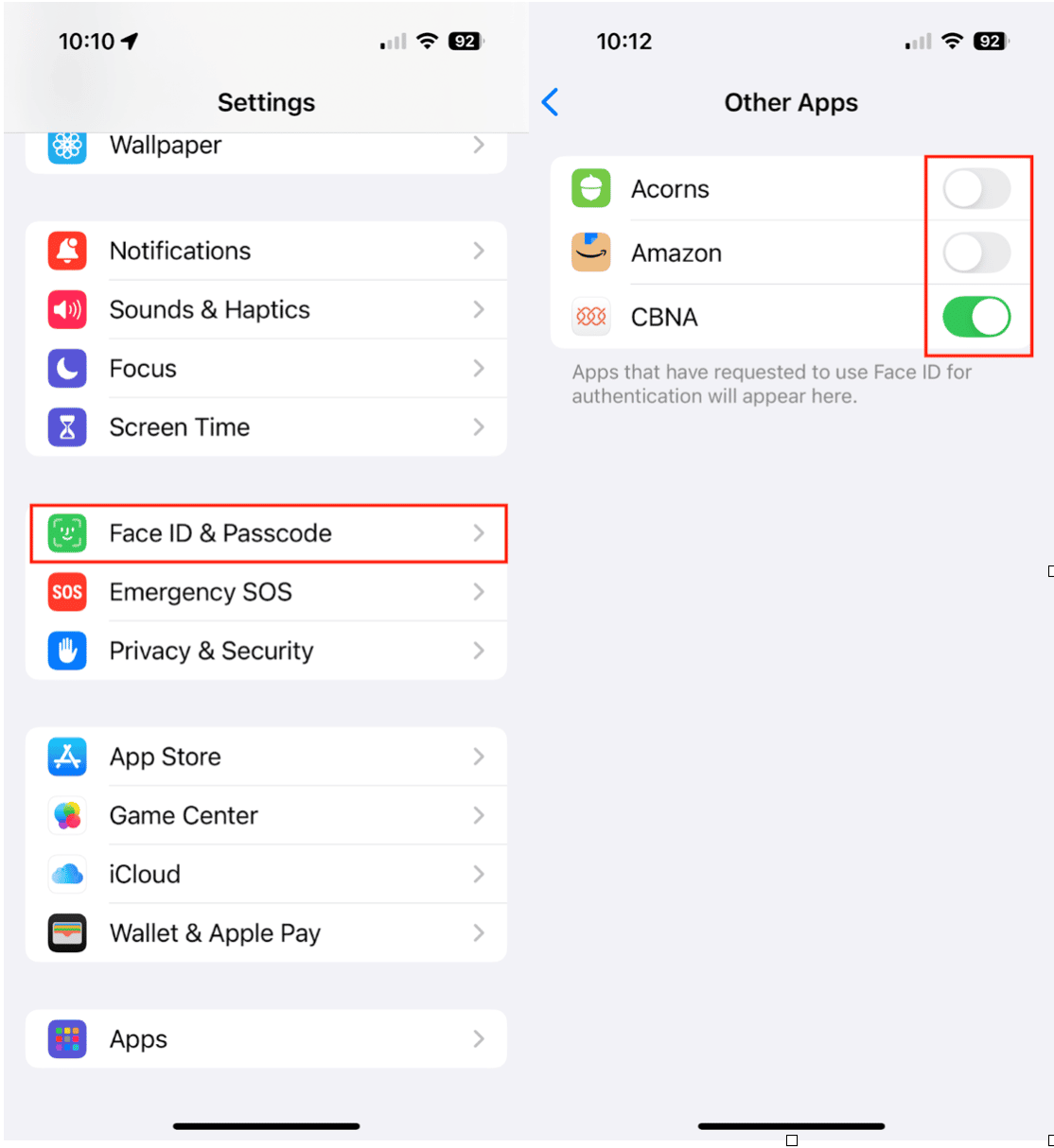 - 在“使用面ID”部分的下,檢查您所需的應用程序是否支持Face ID。您可能必須利用“其他應用程序”才能查看它們。