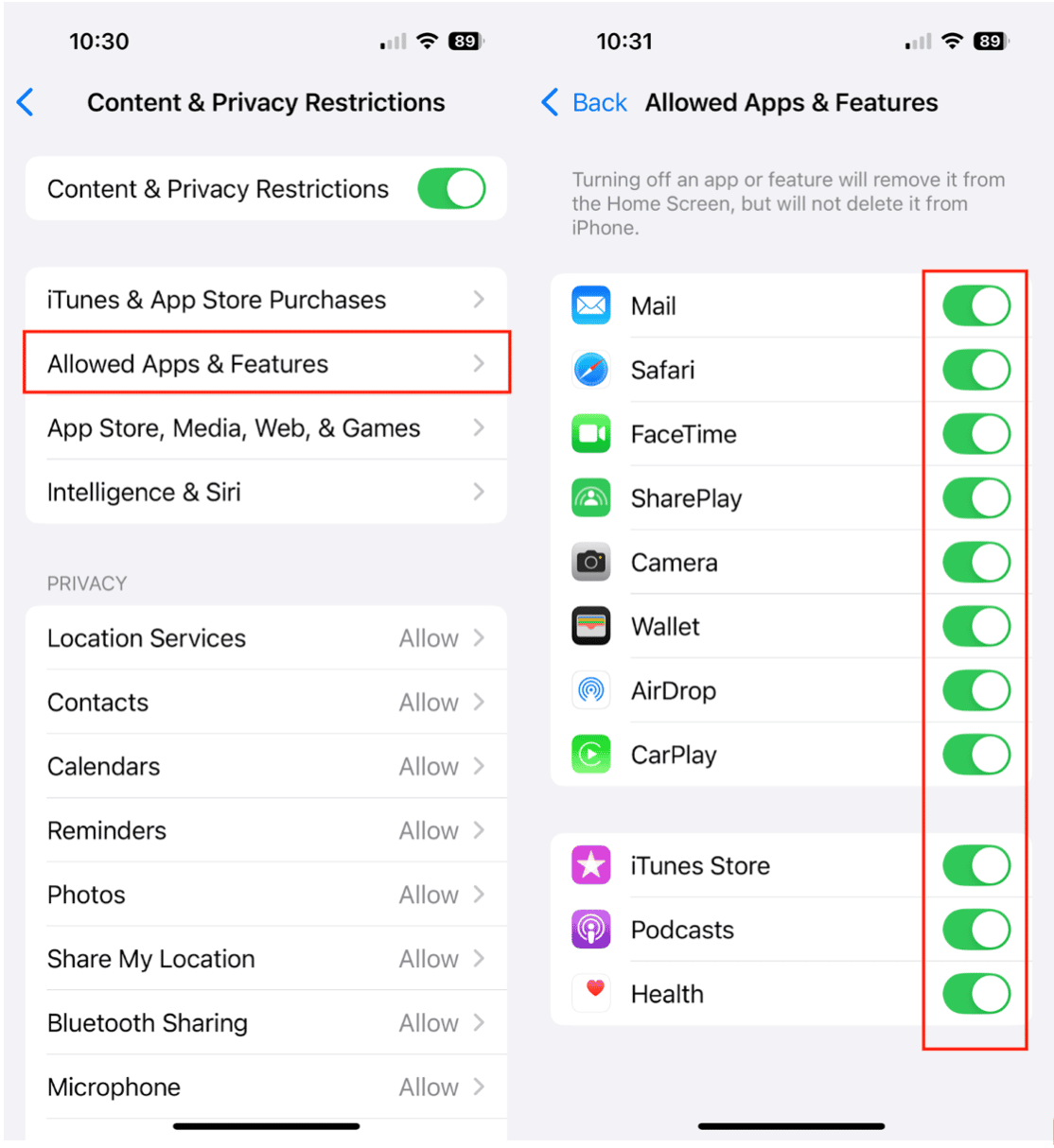 - 點擊允許的應用程序,然後切換要限制的應用程序。