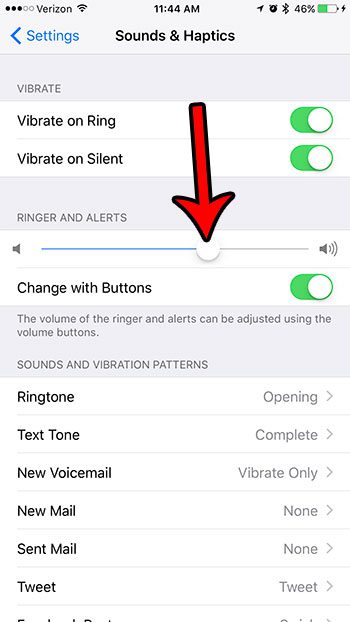 我們下面的指南將向您展示調整鈴聲和提醒音量的選項位於 iPhone 上的位置。然後,您可以調整音量級別的滑塊,直到達到所需的級別。