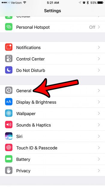 步驟 2:向下滾動並選擇一般的選項。