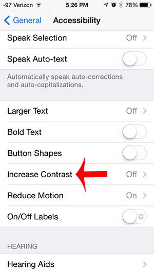 第 4 步:向下滾動並選擇增加對比度選項。