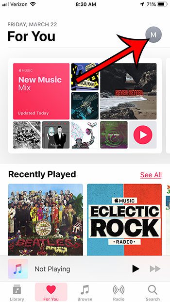 第 3 步:觸摸屏幕右上角的個人資料圖標。