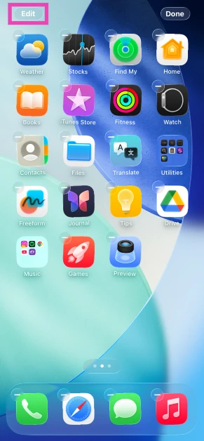 步驟一: 開鎖你的 iPhone 和長按空白處在主屏幕上。
