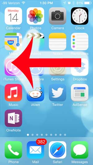 第 1 步:按家iPhone 屏幕下方的 按鈕可返回默認主屏幕,然後從右向左滑動可前進至第二個主屏幕。