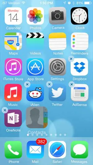 步驟 3:點擊並按住聯繫方式圖標,直到它開始晃動,然後將其拖出文件夾。