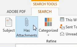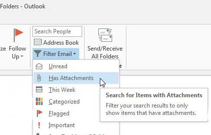 幸運的是,您可以使用預先配置的搜索過濾器來僅顯示包含附件的電子郵件,這將使有問題的電子郵件更容易找到。