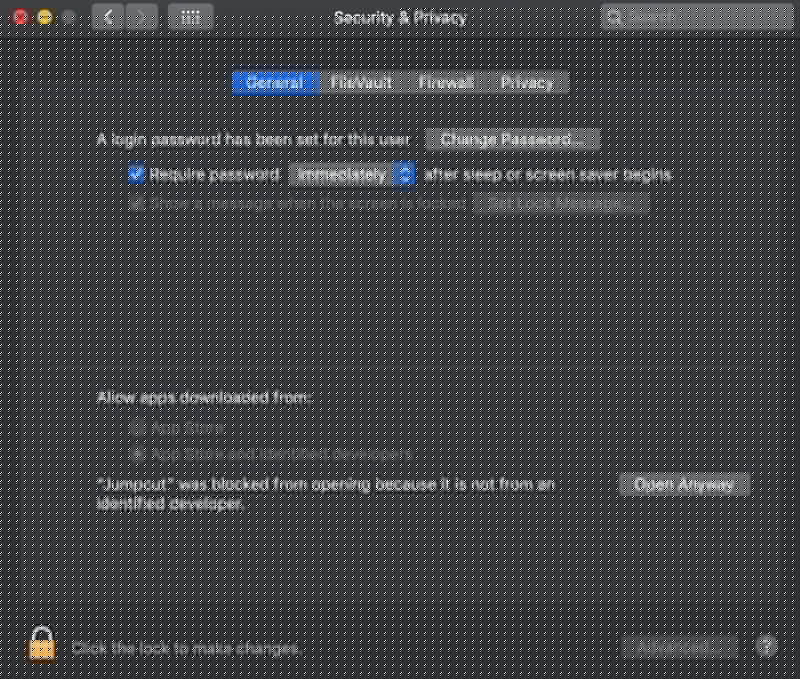 這是完全正常的 - 默認情況下,您的 Mac 會嘗試通過阻止無法識別的程序運行來保護您免受潛在病毒的侵害。由於這是一個安全的應用程序,您可以訪問系統設置>一般的並選擇“無論如何打開” 以允許 Jumpcut 運行。或者您可以轉到應用領域,找到該應用程序,右鍵單擊並選擇打開。