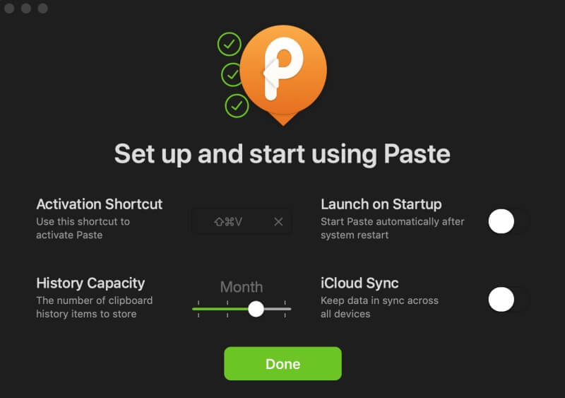 首先,安裝 Paste。您將看到一個帶有一些設置的快速啟動屏幕,然後您就可以開始了!