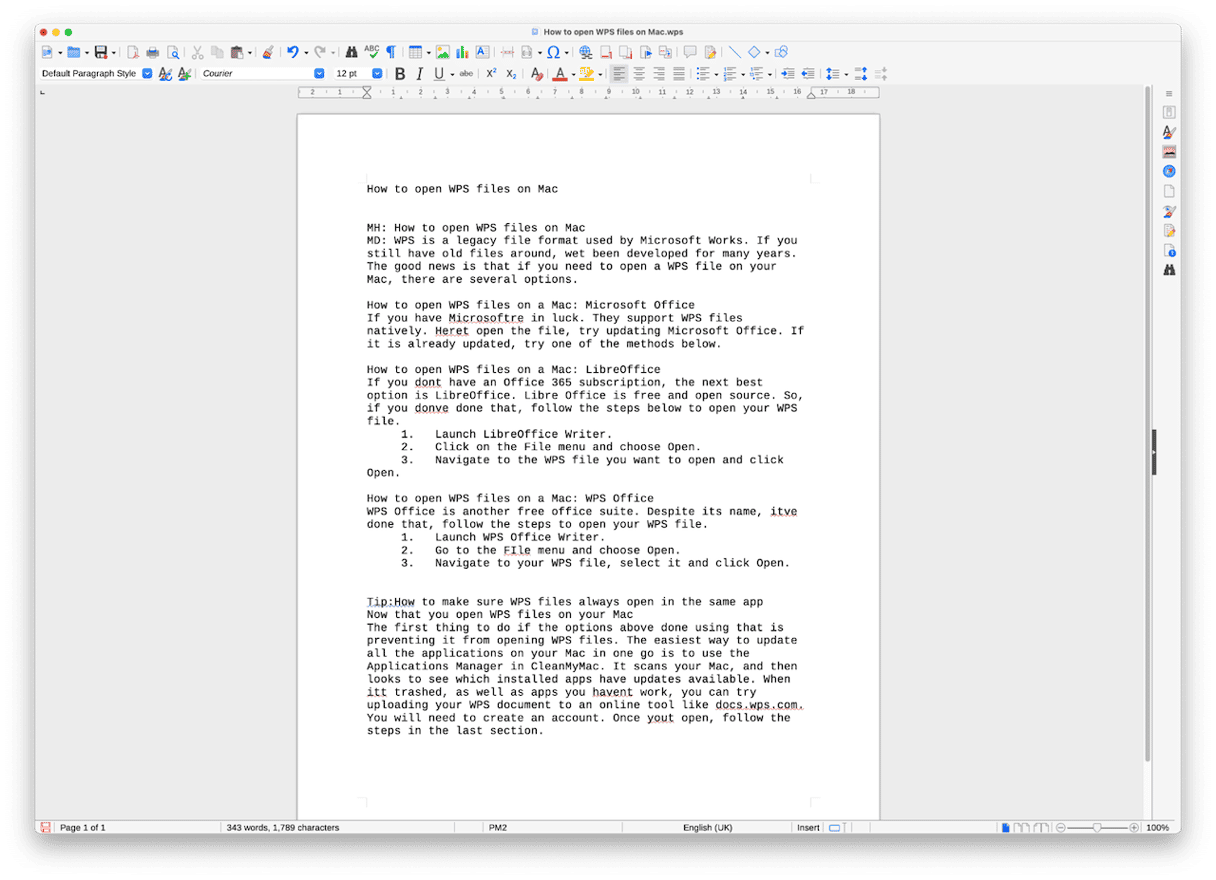 如果您的 Mac 上安裝的是舊版本的 Microsoft Word,那麼您很幸運。它可以本機打開 WPS 文件。以下是如何在 Word 中打開 WPS 文件。