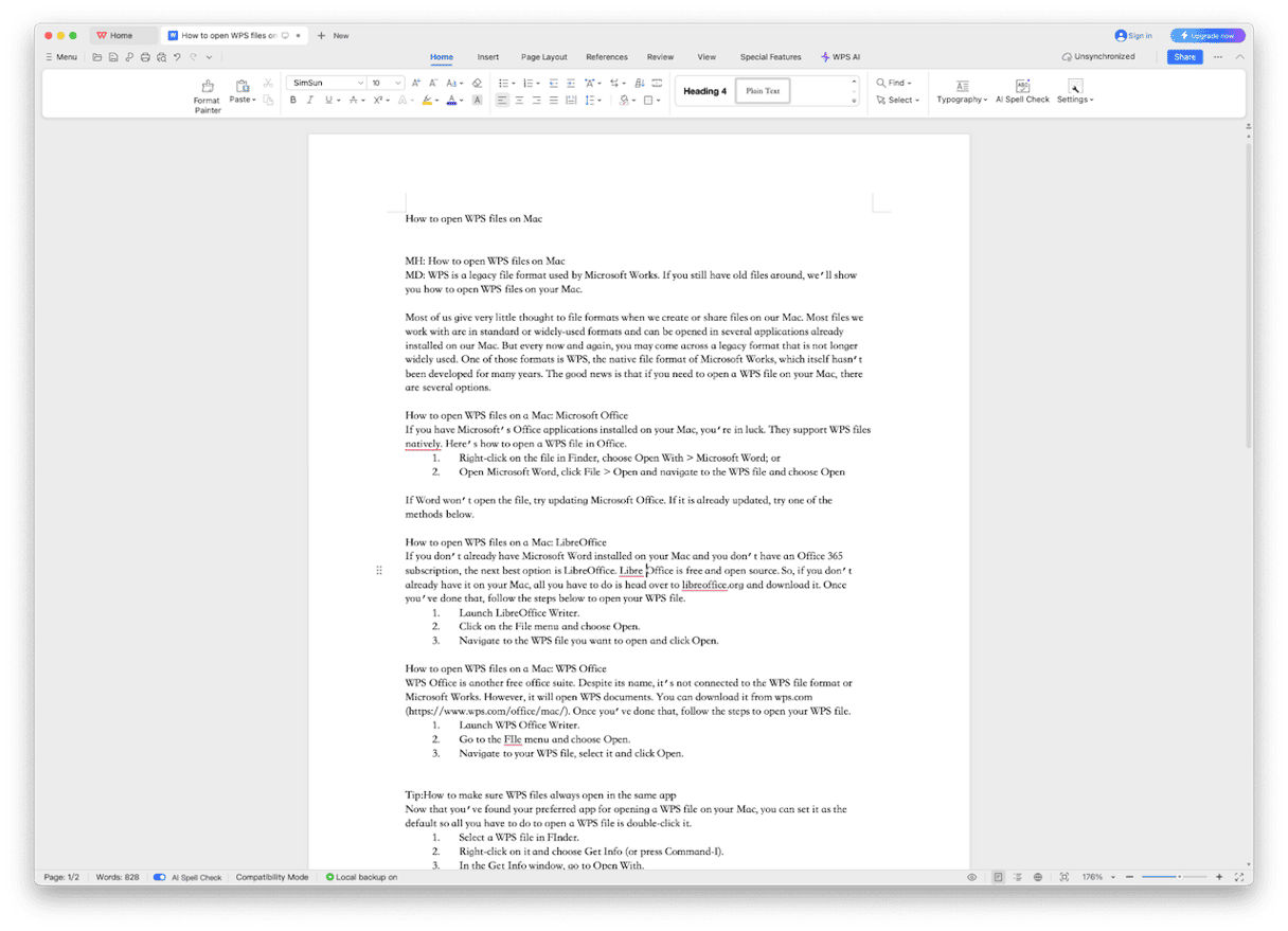 如何在 Mac 上打開 WPS 文件:WPS Office