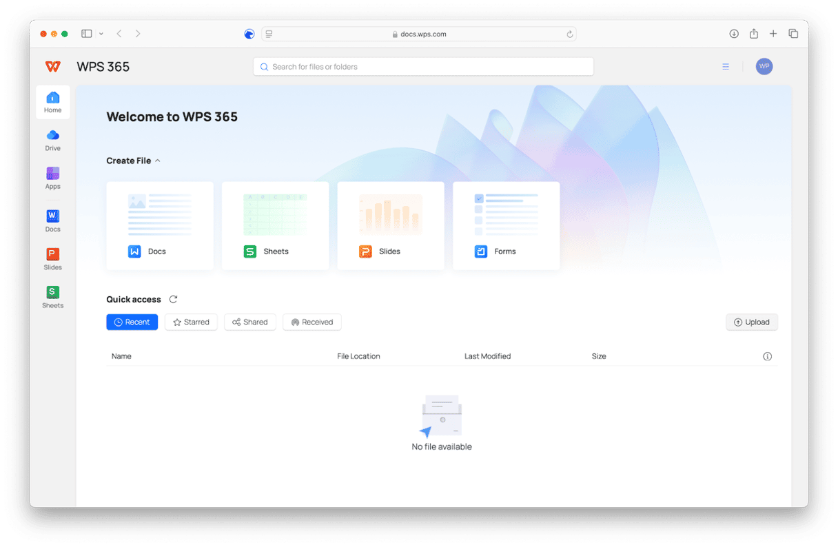 WPS Office 是另一個免費的辦公套件。儘管有其名稱,但它與 WPS 文件格式或 Microsoft Works 無關。但是,它將打開 WPS 文檔。您可以從以下位置下載:wps.com。完成此操作後,請按照步驟打開 WPS 文件。