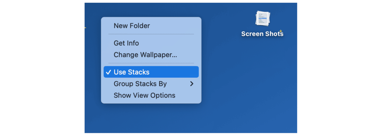 幸運的是,您不必為所有這些文件找到一個家。您可以使用 Finder 中的堆棧功能按文件類型將它們分組到堆棧中。它將使您的桌面看起來更整潔並提高性能。