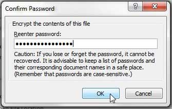 步驟 6:重新輸入密碼進行確認,然後單擊好的按鈕。最好立即保存文檔以確保應用密碼保護。