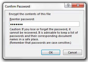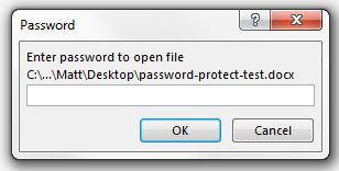 現在您可以關閉文檔,下次打開它時,系統應該會提示您一個密碼對話框,如下所示。