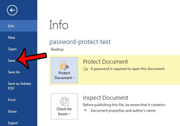 添加密碼後,您需要保存文檔以使密碼生效。下次打開文檔時,系統將提示您輸入將在以下步驟中創建的密碼。