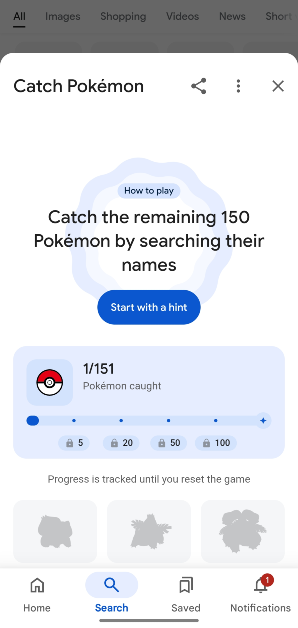 您可以在 Google 應用程序或移動網站上搜索來自關東地區的原始 151 只神奇寶貝之一來玩神奇寶貝複活節彩蛋遊戲。