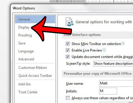 但是,如果您處於經常使用隱藏文本的環境中,並且您發現在打印文檔時經常需要包含該隱藏文本,那麼您可以使用 Word 菜單中的一個選項,該選項將自動打印文檔中的任何隱藏文本。我們下面的指南將引導您到該設置的位置,以便您可以根據需要打開或關閉它。