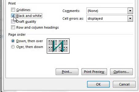 步驟 5:選中左側的框黑與白,然後單擊好的按鈕位於窗口底部。然後,您可以正常打印電子表格,所有顏色都將從文檔中刪除。
