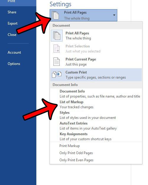 下面的指南將向您展示如何在 Word 2013 打印菜單中打印“標記列表”。此列表包括文檔中存在的所有註釋和標記,甚至會按您在文檔中定義的部分分隔註釋。