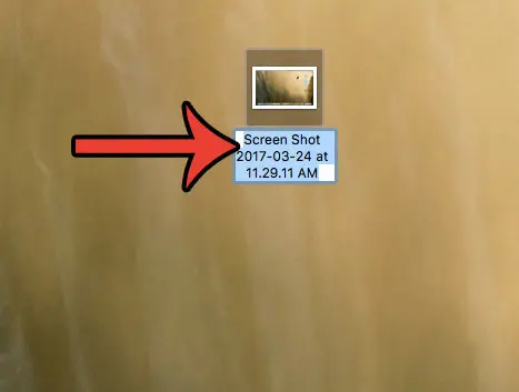 第 3 步:在桌面上找到您的屏幕截圖。您的 Mac 會自動為屏幕截圖提供類似於以下內容的文件名屏幕截圖 2017-03-24 11.29.11 AM,但會將日期和時間替換為您在自己的計算機上截取屏幕截圖時對應的信息。請注意,您可以單擊該文件名並將其刪除或編輯以滿足您自己的需要。
