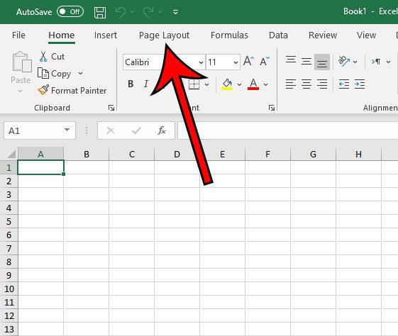 第 2 步:單擊頁面佈局窗口頂部的選項卡。
