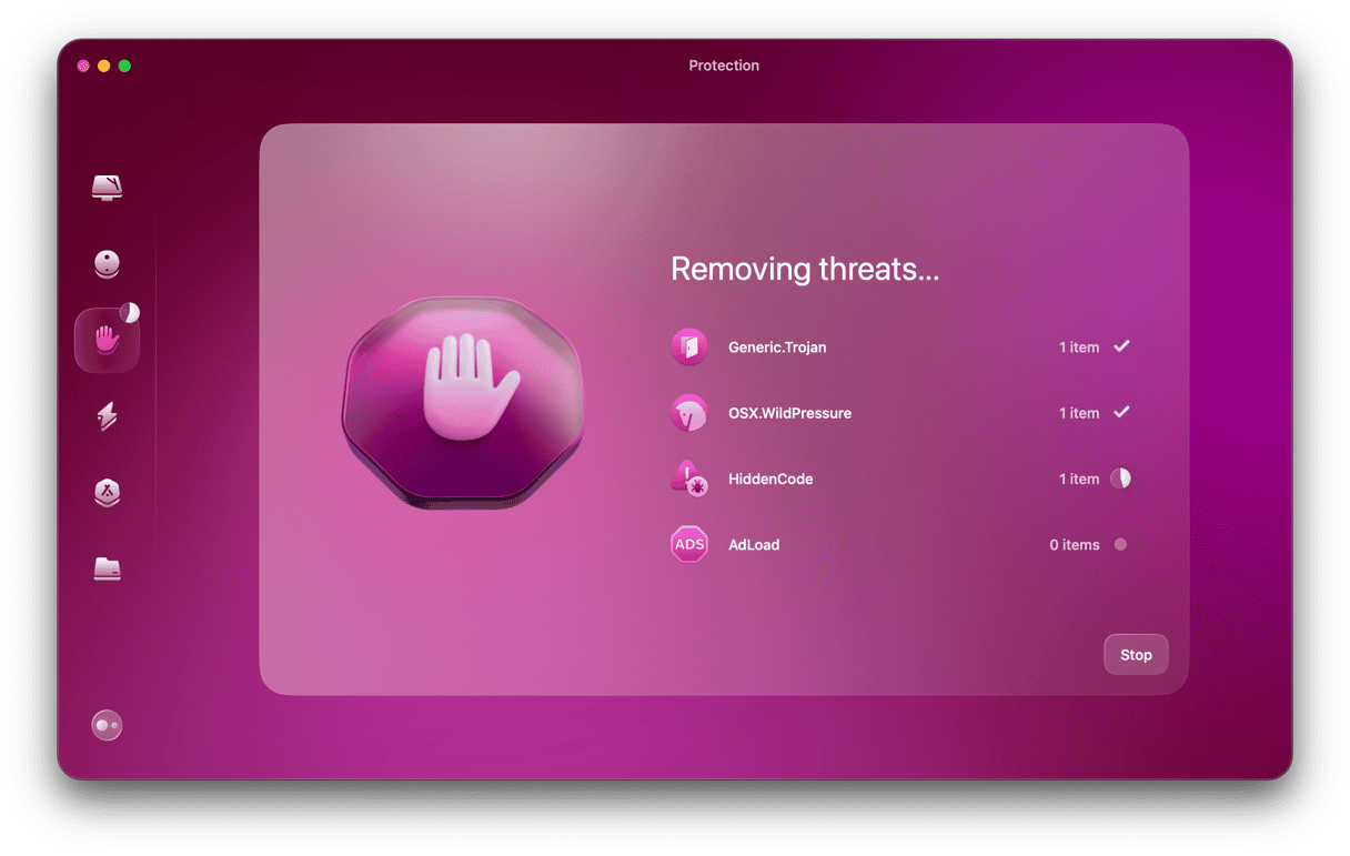 - 定期掃描您的 Mac 是否存在惡意軟件。您可以使用 CleanMyMac(免費試用)來執行此操作。它使用 CleanMyMac 定期更新的惡意軟件數據庫,並將在您的 Mac 上發現的內容與該數據庫進行比較。如果它發現任何惡意軟件,包括可能安裝了後門的惡意軟件,它將主動將其刪除。此外,它還配備了實時和後台監控工具,可以防止在您的 Mac 上安裝後門惡意軟件。