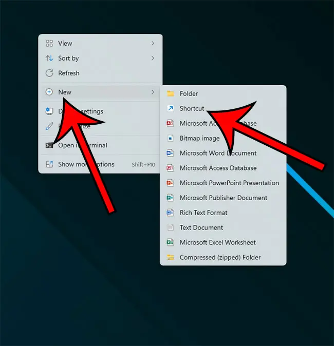 您也可以在桌面空白處右鍵單擊,選擇新的,然後單擊捷徑。