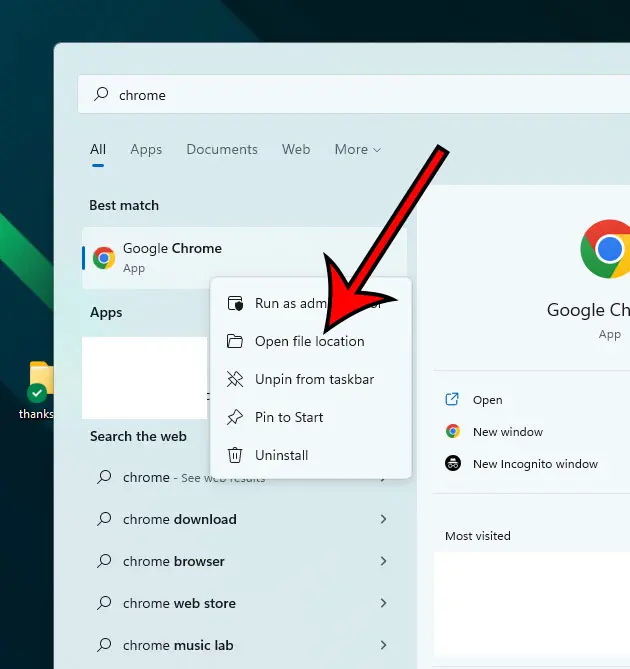 您還可以右鍵單擊步驟 2 中的 Google Chrome 按鈕並查找其他選項,例如將其固定到“開始”菜單或將其添加到任務欄。