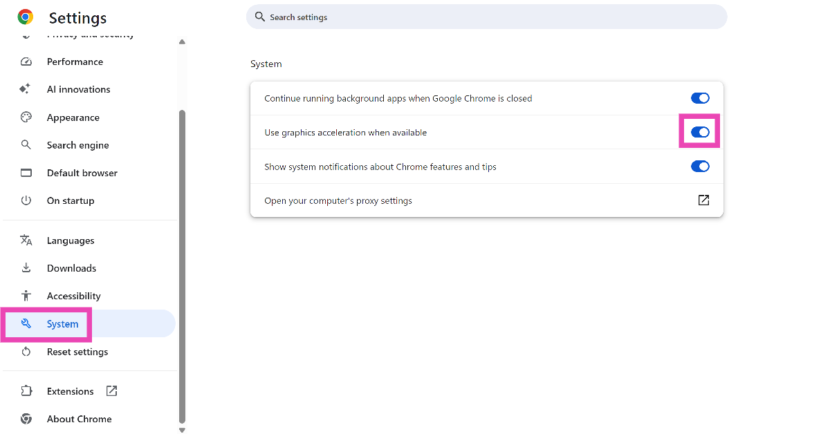 前往設置>系統,然後打開“使用可用的圖形加速”旁邊的切換開關。