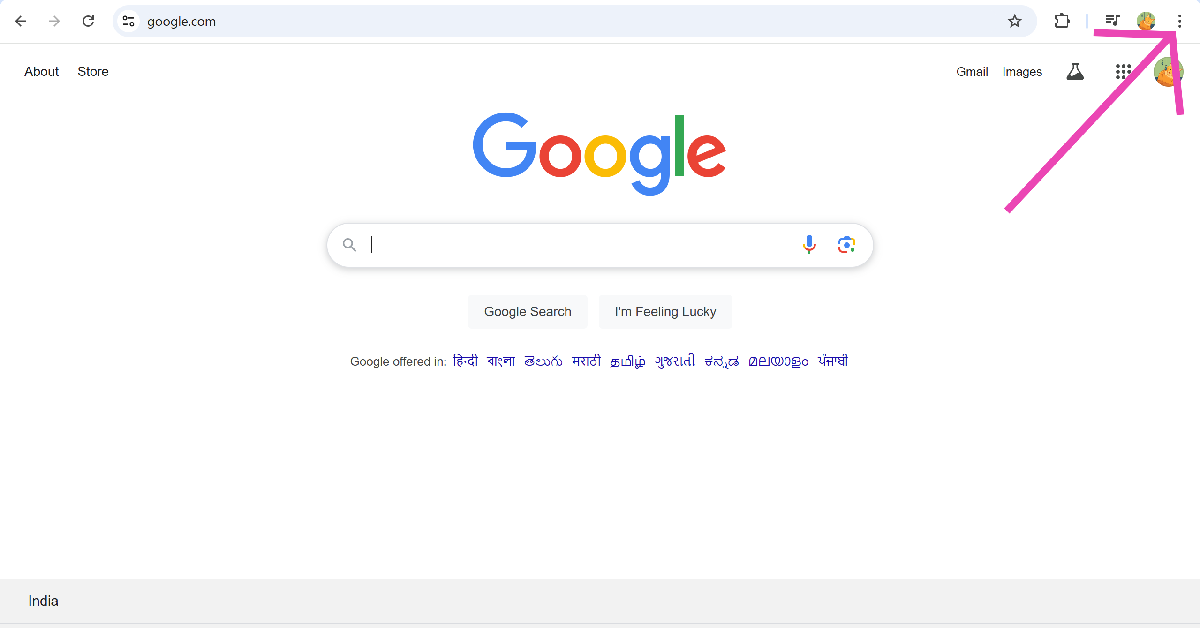 第 1 步:啟動谷歌瀏覽器並點擊省略號在屏幕的右上角。