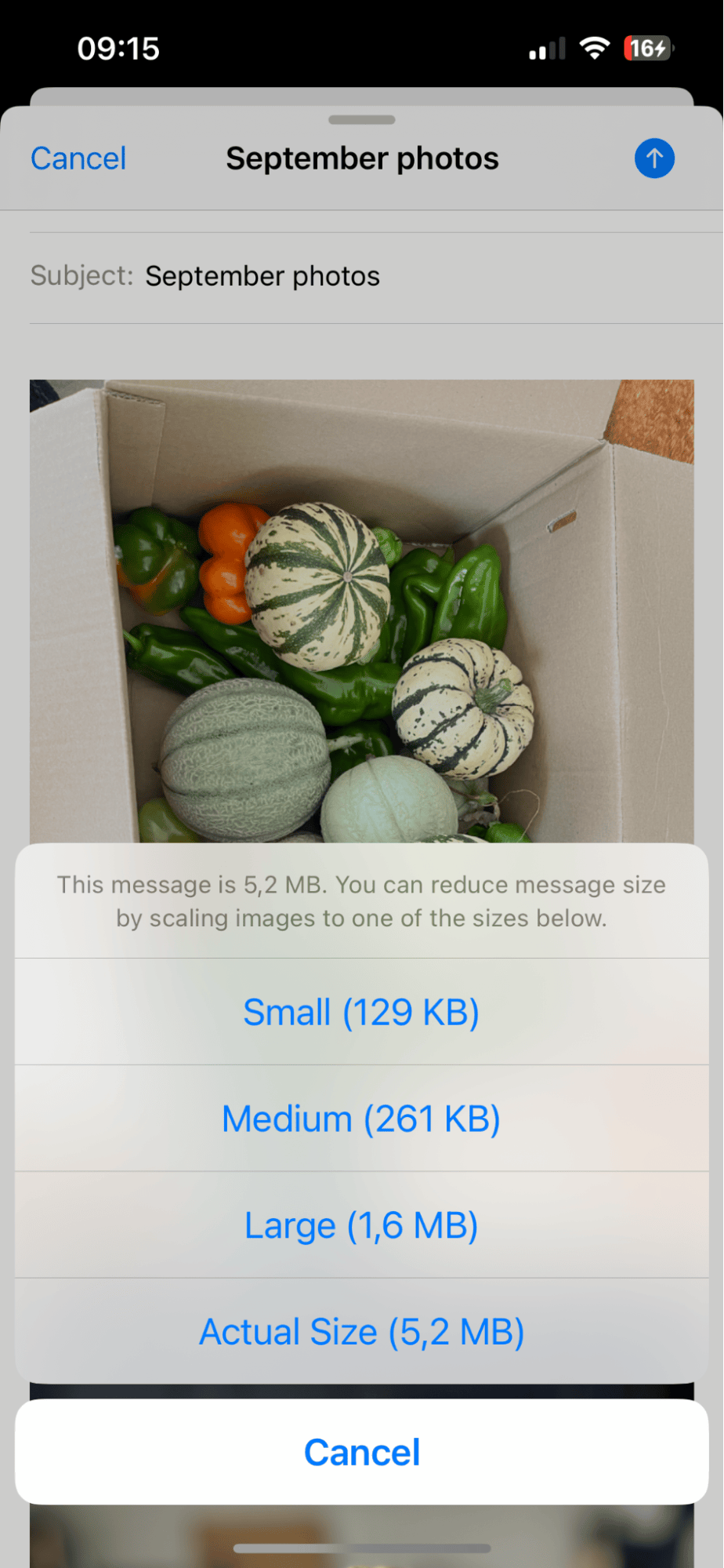當您通過蘋果的郵件應用程序發送圖像時,您可以真正輕鬆地調整照片尺寸;方法如下: