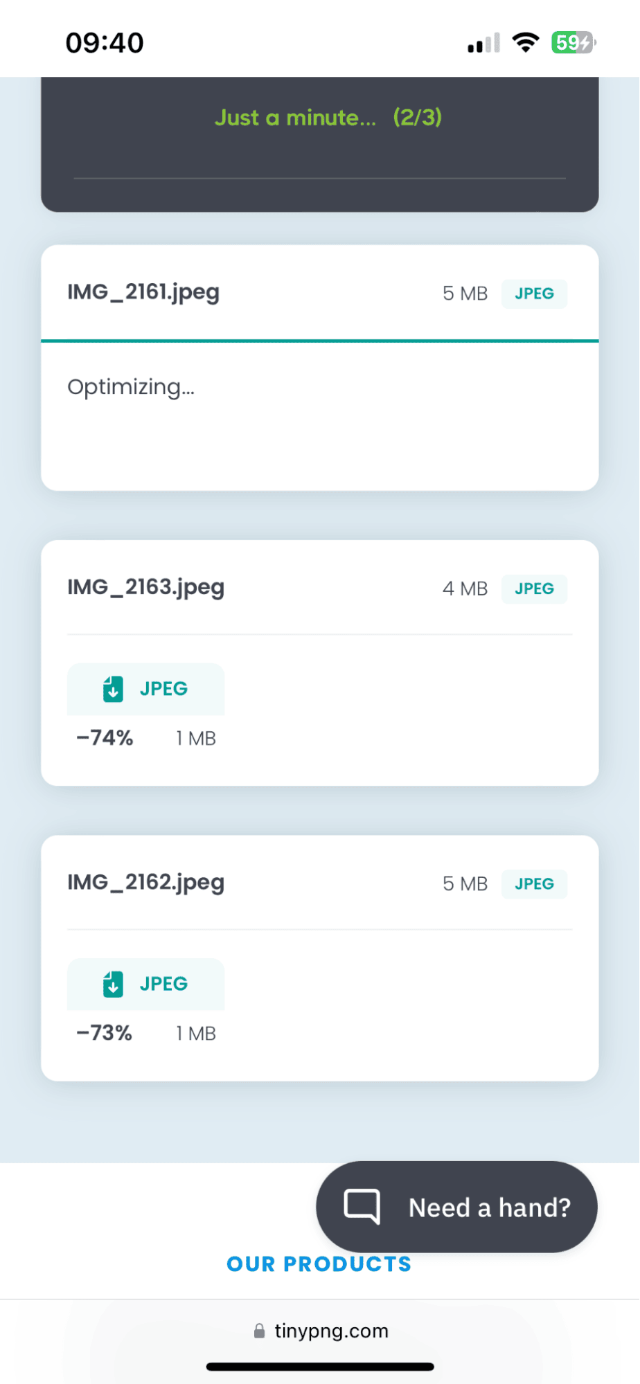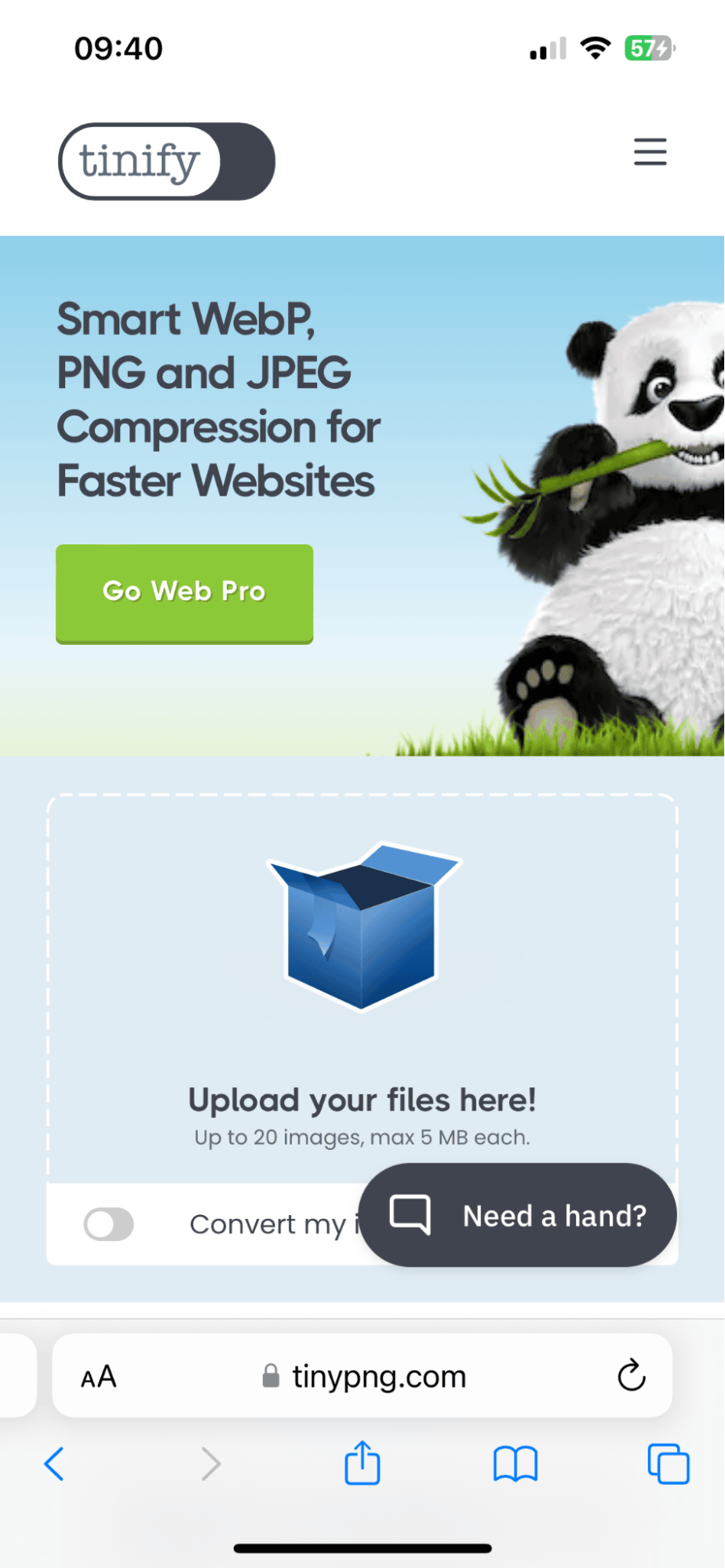 小PNG是一個完全免費的網絡工具,您可以在 iPhone 上使用。在 Safari 中打開鏈接,上傳您想要縮小的圖像,等待壓縮發生,然後只需重新下載它們即可。沒有廣告,也沒有安裝應用程序,這再簡單不過了。