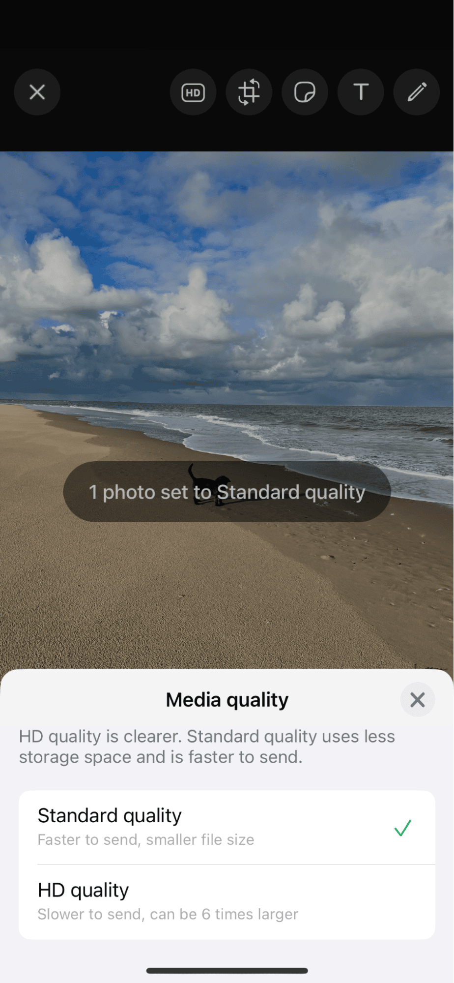- 發送之前,請在審閱面板中選擇頂部的 HD 圖標。