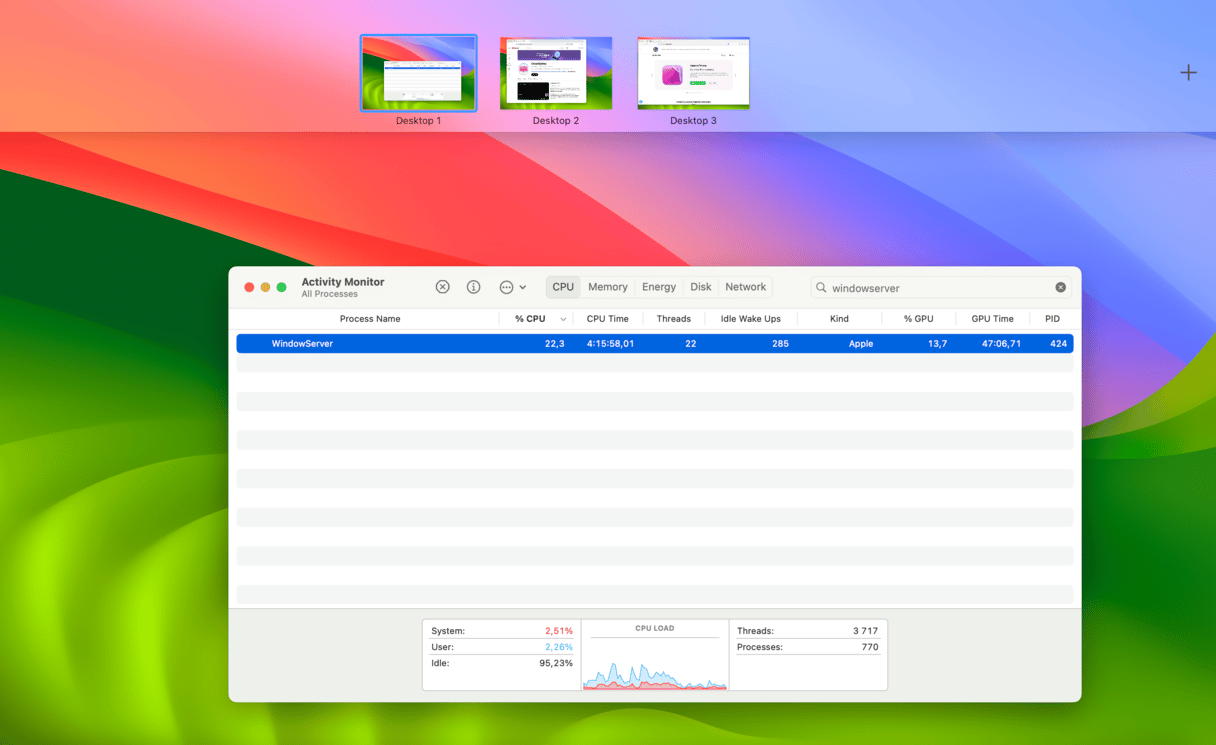 最重要的 macOS 元素之一是 CPU 執行的計算與您在屏幕上看到的內容之間的關係。這種關係由 Mac 上的 WindowServer 管理 - 一個負責在顯示器上繪製圖形元素的進程。