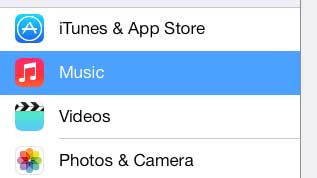 步驟 2:滾動到屏幕左側欄的底部,然後觸摸音樂選項。