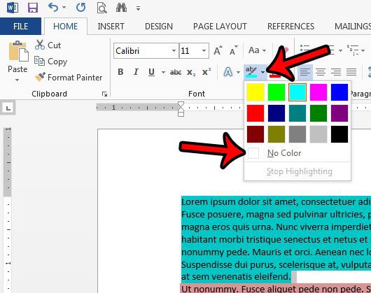 本指南中的步驟假設您有一個當前包含文本突出顯示的文檔。如果您按照以下步驟操作並且文本突出顯示沒有被刪除,那麼您實際上可能會使用段落底紋。我們將在本文末尾介紹如何刪除段落底紋。如果您只想刪除所有格式,請了解如何清除 Word 2013 中的所有格式。