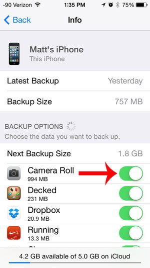 幸運的是,可以自定義 iCloud 備份中包含的項目,並且您可以在創建 iCloud 備份時從包含的項目列表中刪除相機膠卷。