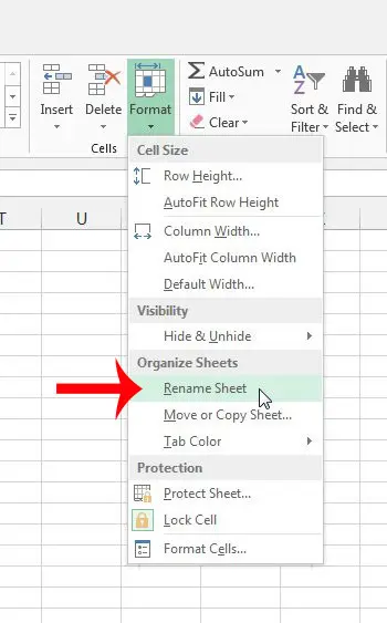 然後單擊格式按鈕並選擇重命名工作表選項。