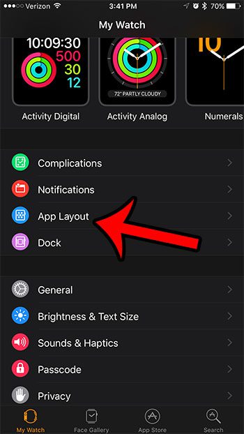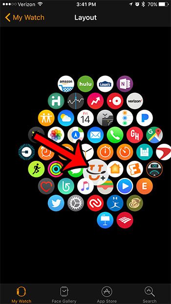 步驟 4:點擊並按住要移動的應用程序圖標,將其拖動到所需位置,然後抬起手指將應用程序圖標設置在該位置。對您想要移動的每個其他 Apple Watch 應用圖標重複此步驟。