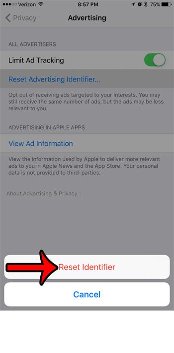 我們的指南在下文中繼續提供有關如何在 iPhone 上重置廣告標識符的更多信息,包括這些步驟的圖片。