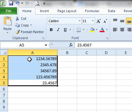 - 啟動 Excel 並選擇您的數字:首先,啟動 Excel 2010。查找要捨入的數字。他們會向你撲來嗎?好的。單擊並拖動以突出顯示這些數字。