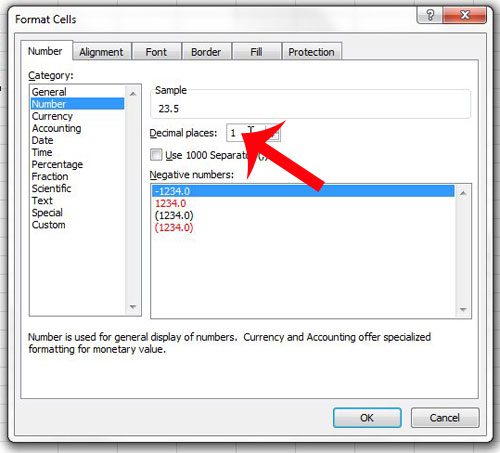 步驟 5:更改中的值小數位字段到1,然後單擊好的按鈕位於窗口底部。