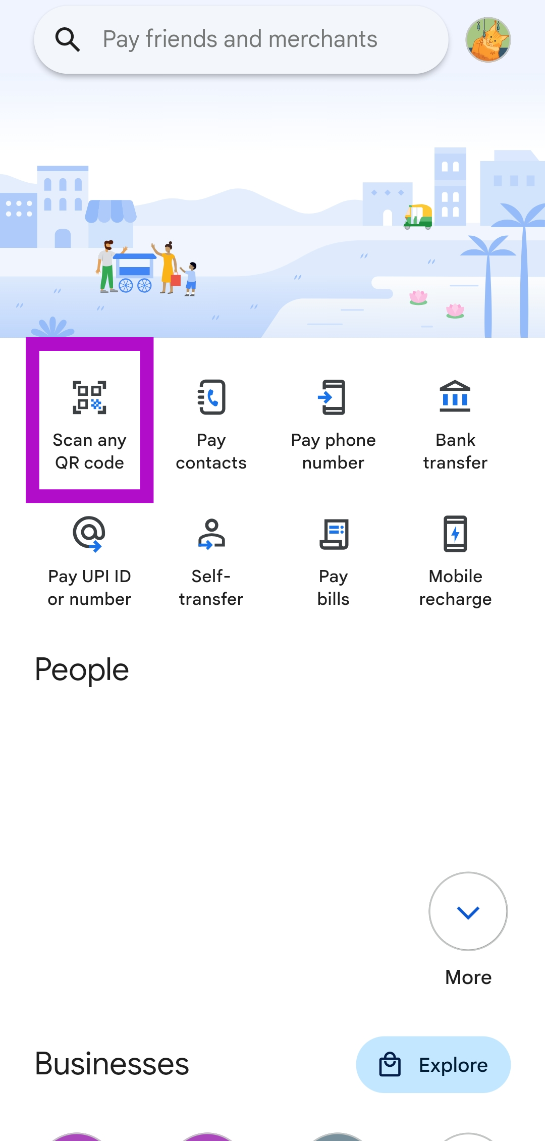 如果收款人的二維碼保存在您手機的圖庫中,您仍然可以通過 GPay 向他們匯款。只需啟動 GPay 應用程序並選擇掃描任意二維碼>從圖庫上傳並選擇帶有二維碼的圖像。