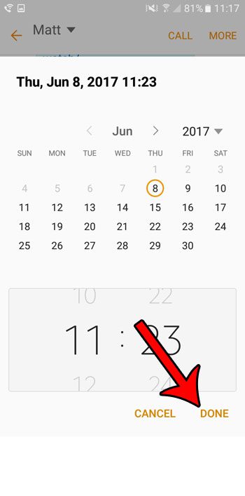 第四步:選擇時間和日期,然後點擊完畢屏幕右下角的按鈕。