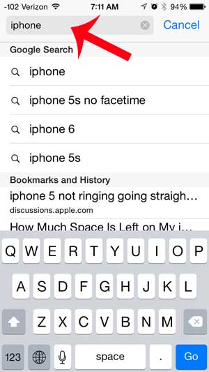 步驟 3:點擊屏幕頂部的地址欄內部,然後輸入您要在頁面上查找的搜索詞。