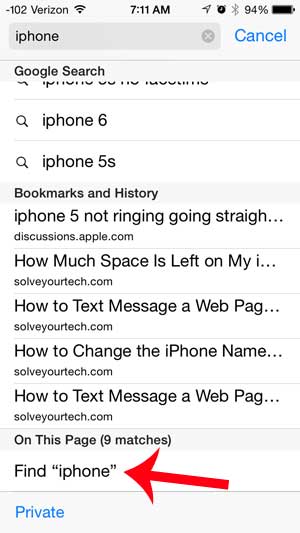 這允許您在搜索字段中輸入搜索詞,然後您可以讓 Safari 在您當前正在查看的網頁上顯示該詞的每個實例。