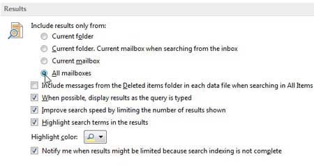 幸運的是,您可以調整 Outlook 搜索設置,以便任何搜索都會檢查所有文件夾,而不僅僅是當前文件夾。