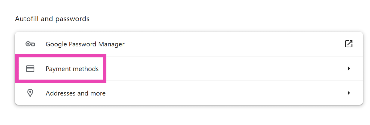 只要您的信用卡和其他付款方式受到密碼、PIN、指紋或面部掃描的保護,就可以安全地在 Google Chrome 中存儲它們。